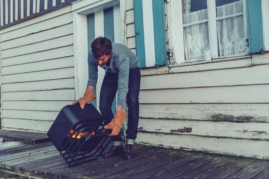 Ou une protection supplémentaire. Ainsi, l'utilisation du brasero est non seulement facile, mais aussi sans souci. Vous pouvez même l'utiliser comme tabouret, siège ou table d'appoint lorsque le feu ne brûle pas.