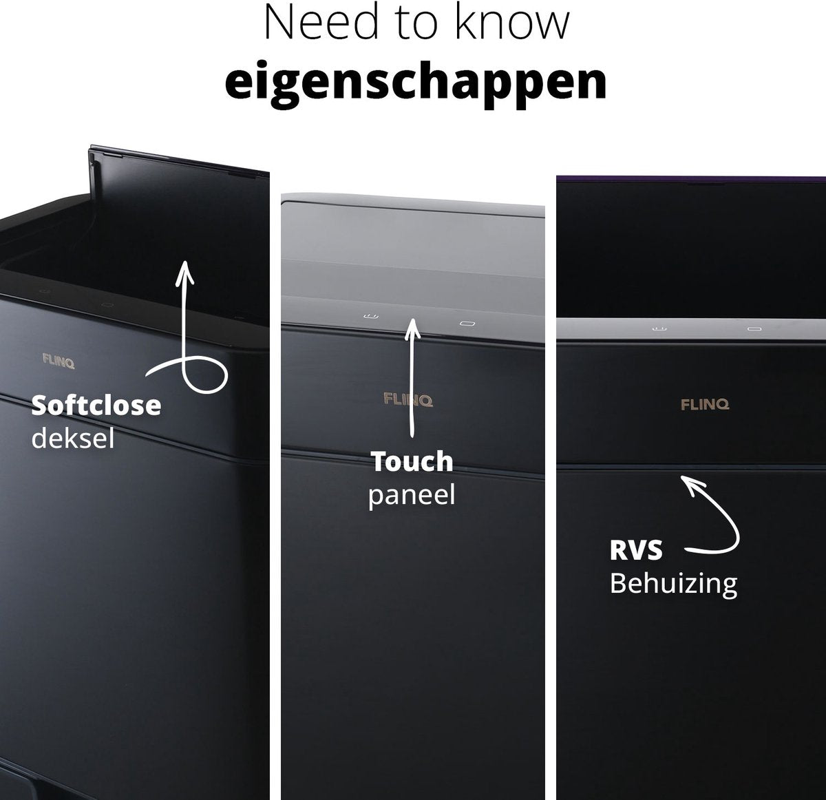 Home & Comfort - FlinQ Senzaro 60L Trash Bin Waste Separation - Poubelle - Poubelle de tri sélectif - Détecteur de mouvement - Noir