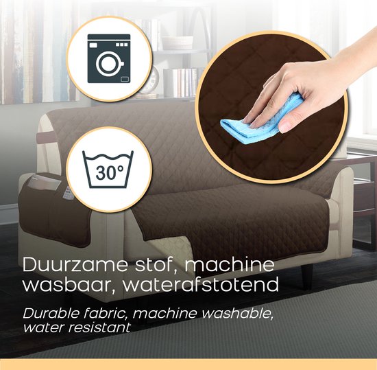 Quel que soit le style de votre canapé ; la housse de protection de canapé s'adapte parfaitement à n'importe quel canapé. Le design a un dos largeVous trouverez l'ajustement parfait pour n'importe quel canapé à deux places avec cette housse. La sangle antidérapante empêche la housse de se déplacer, tandis que la housse protège également les accoudoirs. En outre, des poches de rangement pratiques sont prévues pour la télécommande, le guide TV et d'autres petits objets. Cette housse réversible vous donne l'impression d'avoir deux canapés pour le prix d'un. Choisissez une couleur qui s'harmonise avec votre intérieur. Cette housse peut également être utilisée comme couverture pour chien. En bref, avec cette housse, vous protégez votre canapé des salissures indésirables.