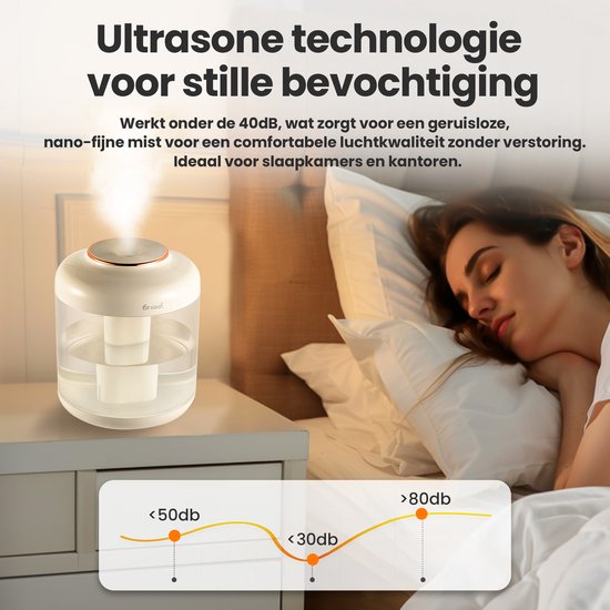 Humidificateur - 1.5L - Humidificateur - Sans fil et rechargeable - Diffuseurs d'arômes - Silencieux - Blanc - de Saaf