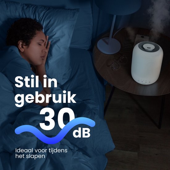 Un niveau d'humidité idéal est essentiel pour un sommeil réparateur. Cet humidificateur est spécialement conçu pour être utilisé dans la chambre à coucher. Avec un niveau sonore inférieur à 30 décibels, il est très silencieux, ce qui vous permet de dormir en toute tranquillité.