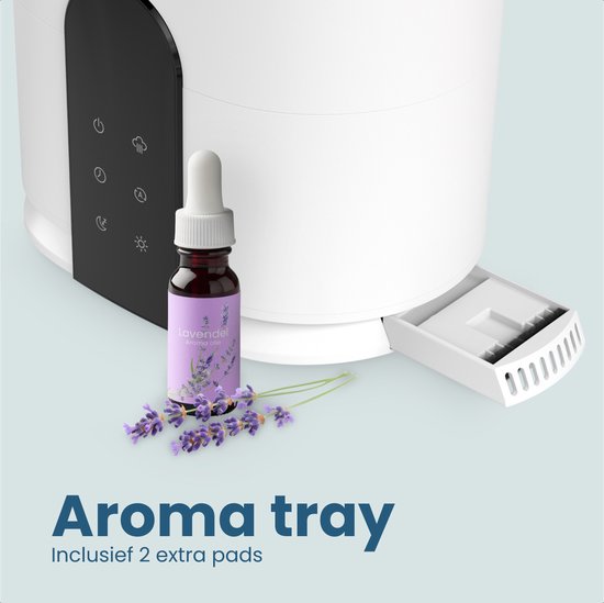 Transformez votre pièce en un lieu de relaxation totale. Cet appareil fonctionne également comme un diffuseur d'arômes raffinés. Utilisez le plateau spécial arômes et l'un des tampons inclus pour ajouter quelques gouttes de votre huile essentielle préférée. La brume diffusera un parfum agréable et apaisant dans la pièce. Combinez cela avec l'éclairage d'ambiance, que vous pouvez régler sur 7 couleurs différentes, pour créer l'ambiance idéale pour un moment de repos, de méditation ou une fin de journée relaxante.