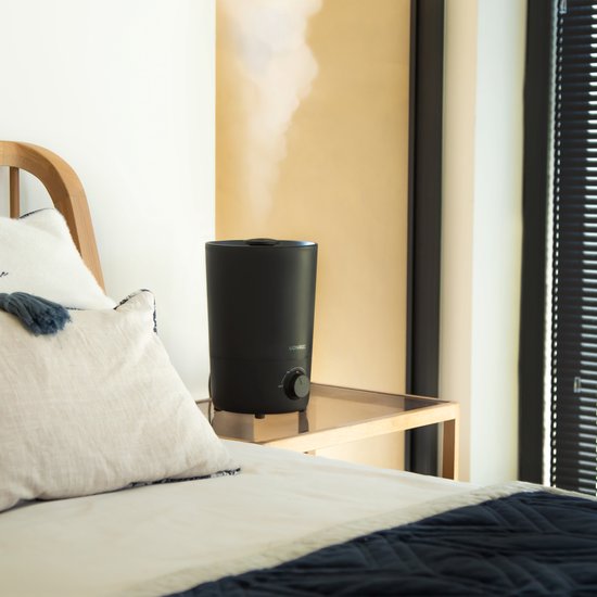 Il s'agit d'un humidificateur à ultrasons, ce qui signifie que l'eau est pulvérisée à l'aide de sons à haute fréquence. Cela se fait de manière silencieuse, sans vapeur et rapide ; lorsque vous mettez l'appareil en marche, vous constatez immédiatement les résultats. Comme l'eau est pulvérisée à froid - et n'a donc pas besoin d'être chauffée à la vapeur - il est sûr et économe en énergie.