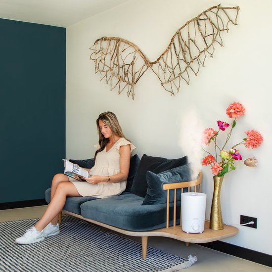 Cet appareil est un humidificateur à ultrasons, ce qui signifie que l'eau est pulvérisée par des vibrations à haute fréquence. Cela garantit un fonctionnement silencieux, sans vapeur et rapide ; dès que vous mettez l'appareil en marche, vous verrez immédiatement les résultats. Comme l'eau est pulvérisée à froid - et n'a donc pas besoin d'être chauffée - il offre une solution sûre et économe en énergie.