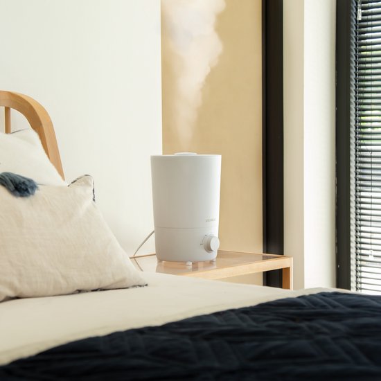 Ce modèle élégant est doté d'un bouton rotatif pratique qui vous permet de régler facilement le niveau d'humidité souhaité. Grâce au couvercle entièrement rotatif, vous pouvez facilement régler la sortie de la brume sur 360°. Vous pouvez ainsi positionner l'appareil de manière optimale dans votre intérieur sans que la sortie de la brume ne vous gêne. Le réservoir de 2,6 litres garantit un fonctionnement durable. Si le réservoir devait malgré tout se vider de manière inattendue, pas d'inquiétude. Un niveau d'eau bas est clairement indiqué par un voyant LED orange, et le système de sécurité éteint automatiquement l'appareil.