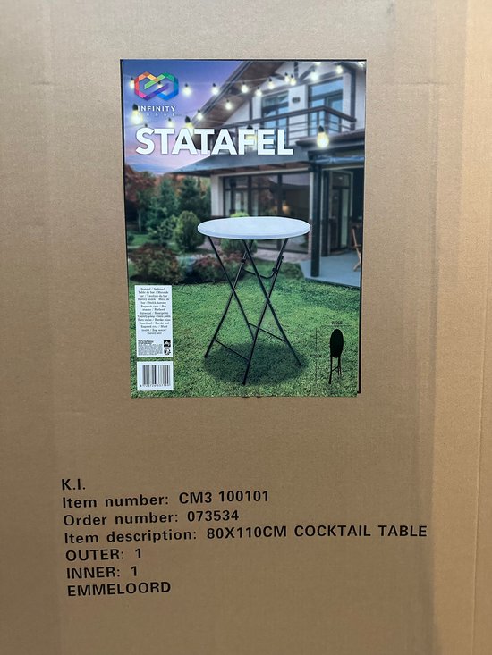 Vous avez quelque chose à célébrer ? Ces deux tables de bar Infinity Goods sont idéales pour les anniversaires, les réceptions, les apéritifs, les fêtes (de jardin) ou les barbecues. Grâce à la finition robuste, la table de fête durera des années, garantissant une belle table debout pour des années à venir lors de toutes vos fêtes et événements. La table convient à tous les types de temps. La table debout est facile à nettoyer et, en outre, vous pouvez facilement la plier, ce qui réduit l'espace de rangement. La table debout peut être utilisée à l'intérieur et à l'extérieur. Grâce à sa hauteur de 110 cm, la table de bar est très confortable à utiliser et son diamètre de 80 cm permet à un grand nombre de personnes de se tenir autour d'elle et offre suffisamment d'espace pour les snacks et les boissons. Cette table debout chic est garantie de faire de votre événement un succès !