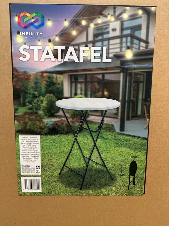 Infinity Goods 2x Stevige Statafel + 2x Zwarte Statafelrok - Partytafel - Robuust en Weersbestendig - Inklapbaar - 80cm x 110cm - Feest - Wit/Zwart