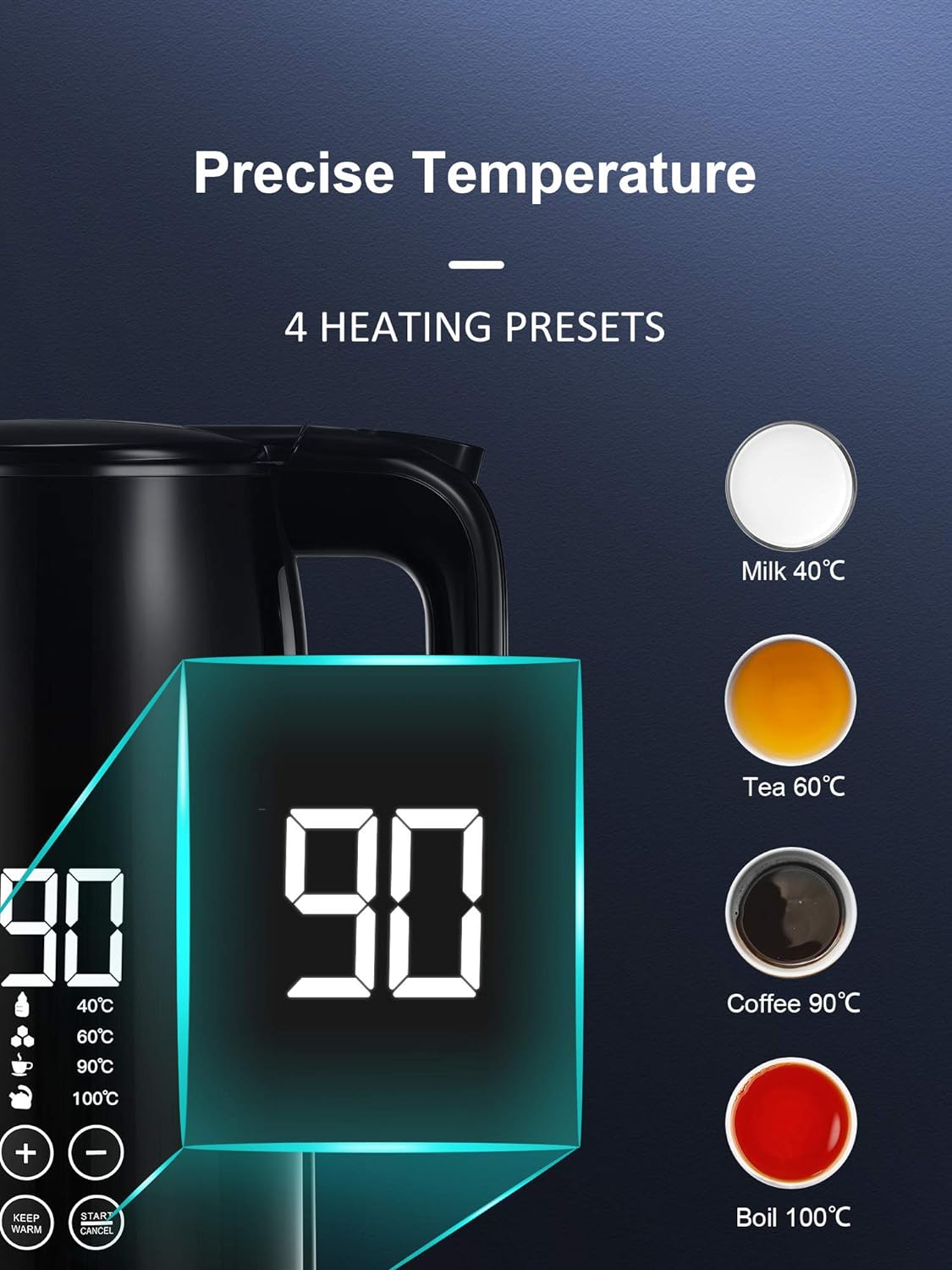Grâce à son design attrayant et à ses fonctions avancées telles que le réglage de la température et la fonction de maintien au chaud, cette bouilloire est un atout pour toute cuisine. Vous pouvez facilement régler la bouilloire sur une température comprise entre 40°C et 100°C. De plus, la bouilloire est dotée d'un écran LED tactile avec indicateur de température, ce qui vous permet de toujours connaître la température exacte de votre eau.