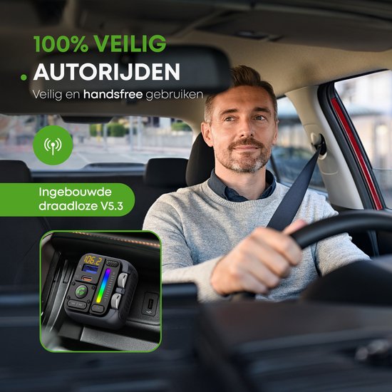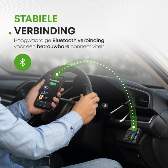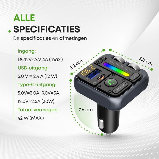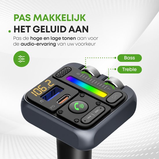Vous souhaitez passer des appels Bluetooth dans la voiture et utiliser Spotify ou Youtube sans fil ? Ce transmetteur FM pratique avec Bluetooth, charge rapide, fonction de basse et fonction d'éclairage LED est heureux de vous aider ! Ayez les mains libres et chargez dans les embouteillages grâce à ce transmetteur FM pratique doté de deux ports de charge rapide !