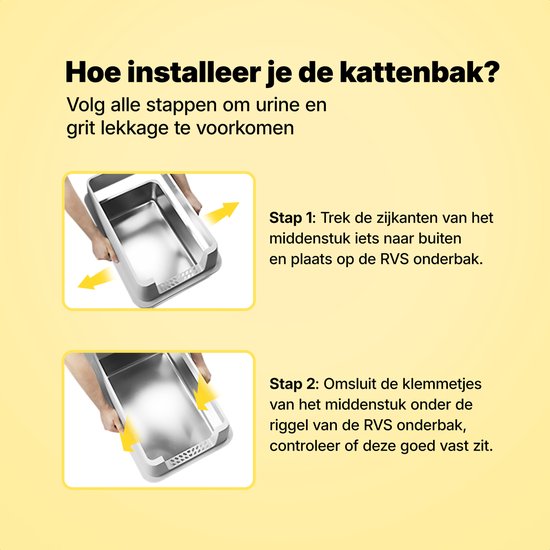 Un bac à litière en acier inoxydable a l'avantage d'être solide et durable,ijtvast a une longue durée de vie et est très durable. Il n'y a pas d'usure due aux rayures ou à l'urine qui s'infiltre dans le matériau, comme c'est souvent le cas avec les alternatives en plastique, ce qui permet de garder le bac à litière exempt d'odeurs désagréables. Le bac à litière est également divisé en deux sections qui s'emboîtent parfaitement, évitant ainsi les fuites d'urine.