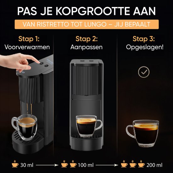 JAP Appliances Capsura - Machine à café à tasses - Volume de tasse réglable 30 - 200 ml - Machine à café à tasses - Machine à café - Cafetière