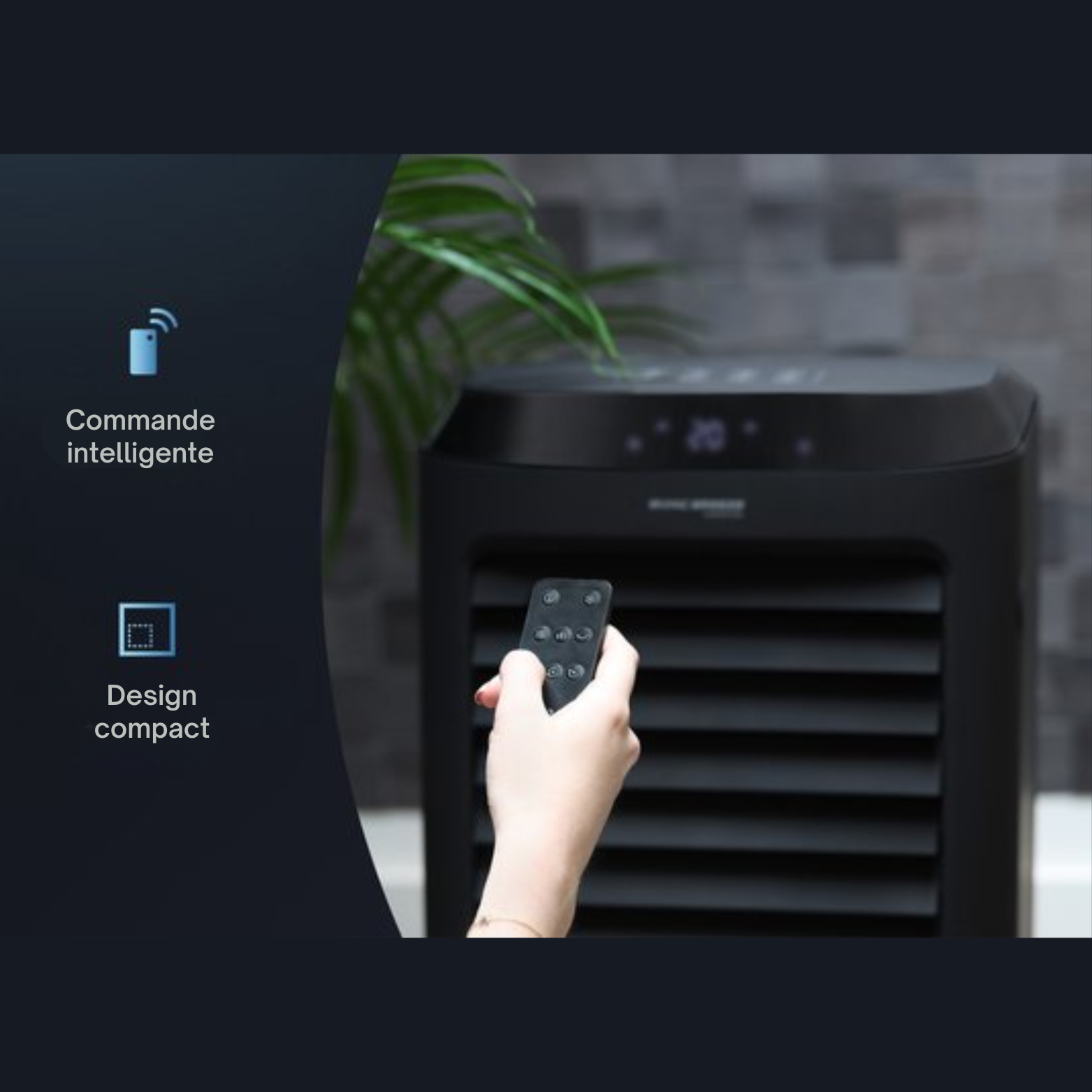 Le rafraîchisseur d'air est livré avec une télécommande. Celle-ci vous permet de régler tous les paramètres du refroidisseur d'air depuis votre place de manière simple et facile.