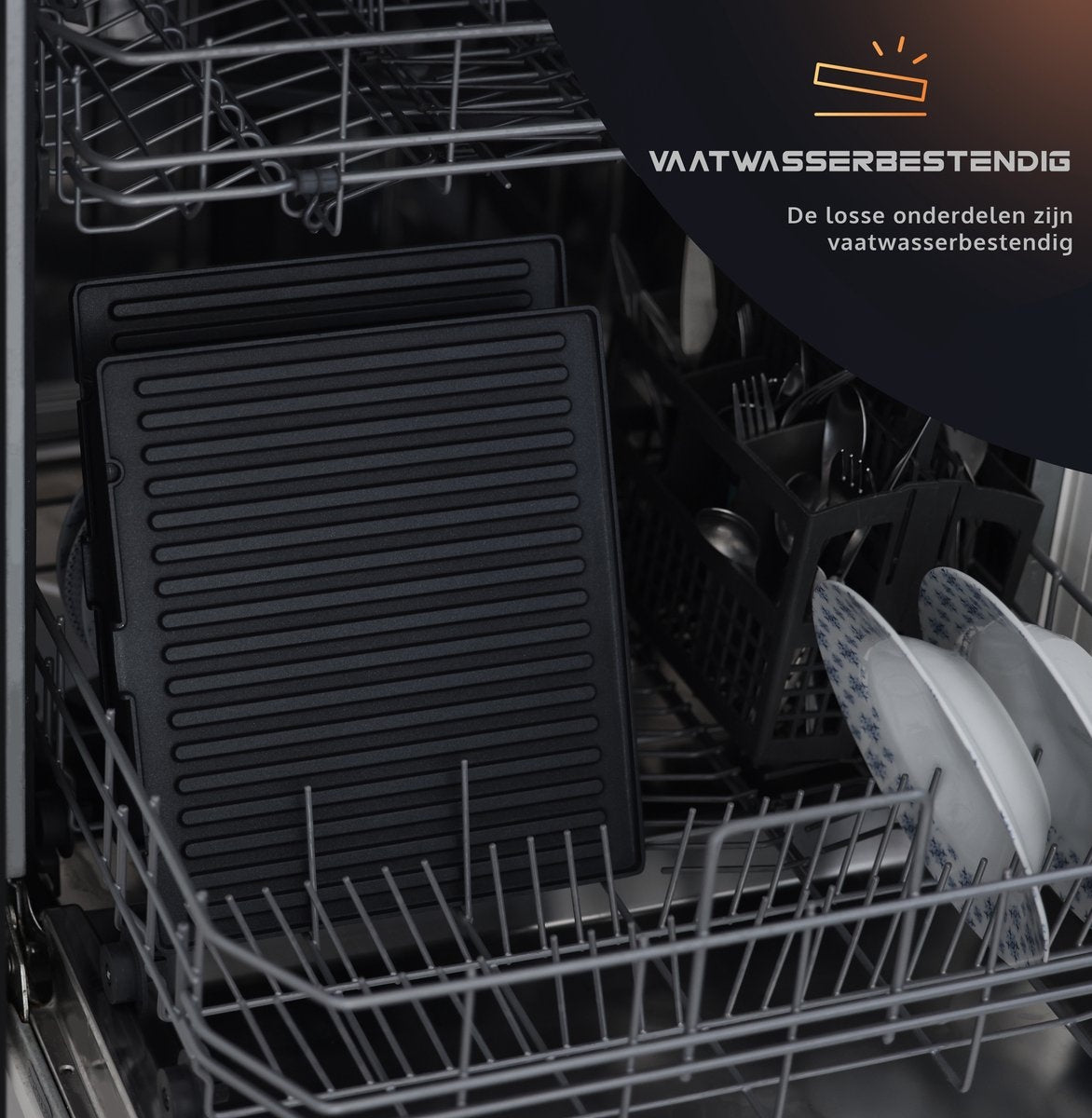 Grâce au revêtement antiadhésif sans PFOA, vous pouvez facilement retirer les aliments des plaques sans les casser ou les déchirer. Pendant la friture, toute la graisse est recueillie dans un bac à graisse. Les plaques de cuisson sont amovibles et, comme le bac à graisse, peuvent être mises au lave-vaisselle en toute sécurité.
