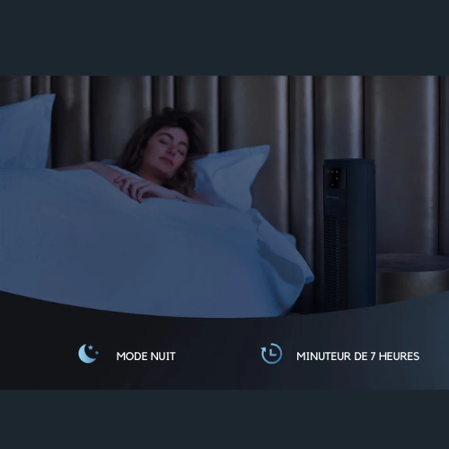 Le ventilateur à tour fournit un flux continu d'air frais, grâce aux dernières technologies, dans un silence maximal. Pratique lorsque vous souhaitez utiliser le ventilateur dans la chambre à coucher, par exemple.