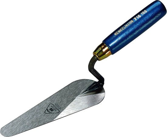 Également connu sous le nom de langue de chat. Lame en acier inoxydable (RVS J.P.). Muni d'un manche en bois laqué bleu.