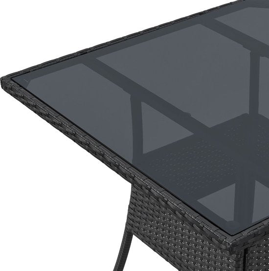 Juskys Polyrotan Table de jardin / Table d'appoint / Table de balcon Yoro - Carré - 80 x 80 cm - Noir - Plateau en verre inclus