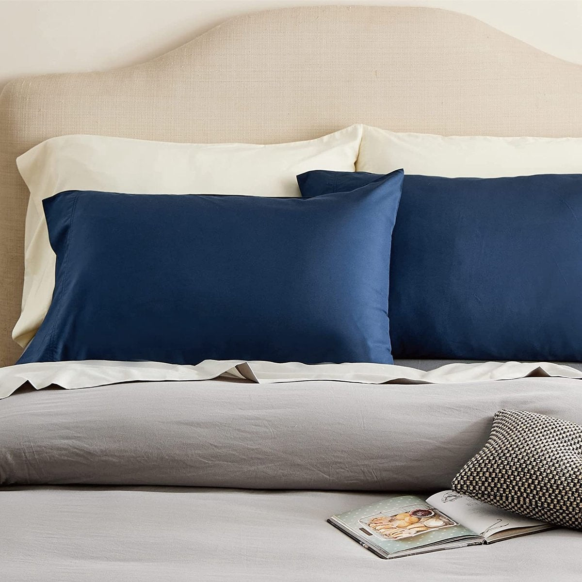 Kalm Kussensloop 60x70cm - 100% Hoogwaardige Katoen - Comfortabel en Vochtregulerend - Blauw/Wit
