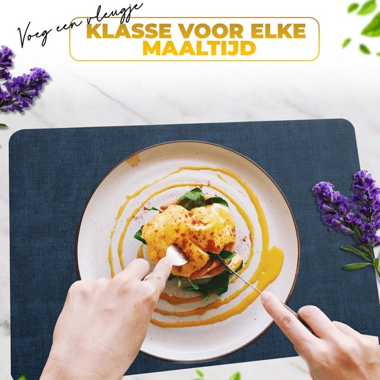Nos sets de table bleu foncé dégagent un charme intemporel qui s'intègre parfaitement à tous les intérieurs. La couleur bleu foncé profond s'harmonise parfaitement avec différents tons et motifs, ce qui en fait un choix polyvalent pour votre table à manger. La texture lisse et régulière est agréable au toucher et donne un aspect soigné à votre table.