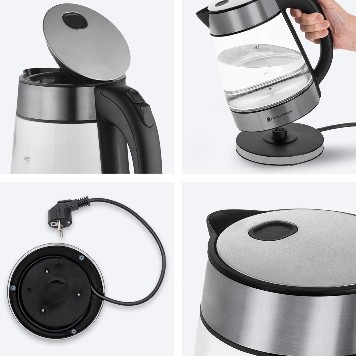 Bouilloire électrique - KitchenBrothers - 1,7L - 2200W - Verre - Acier Inoxydable