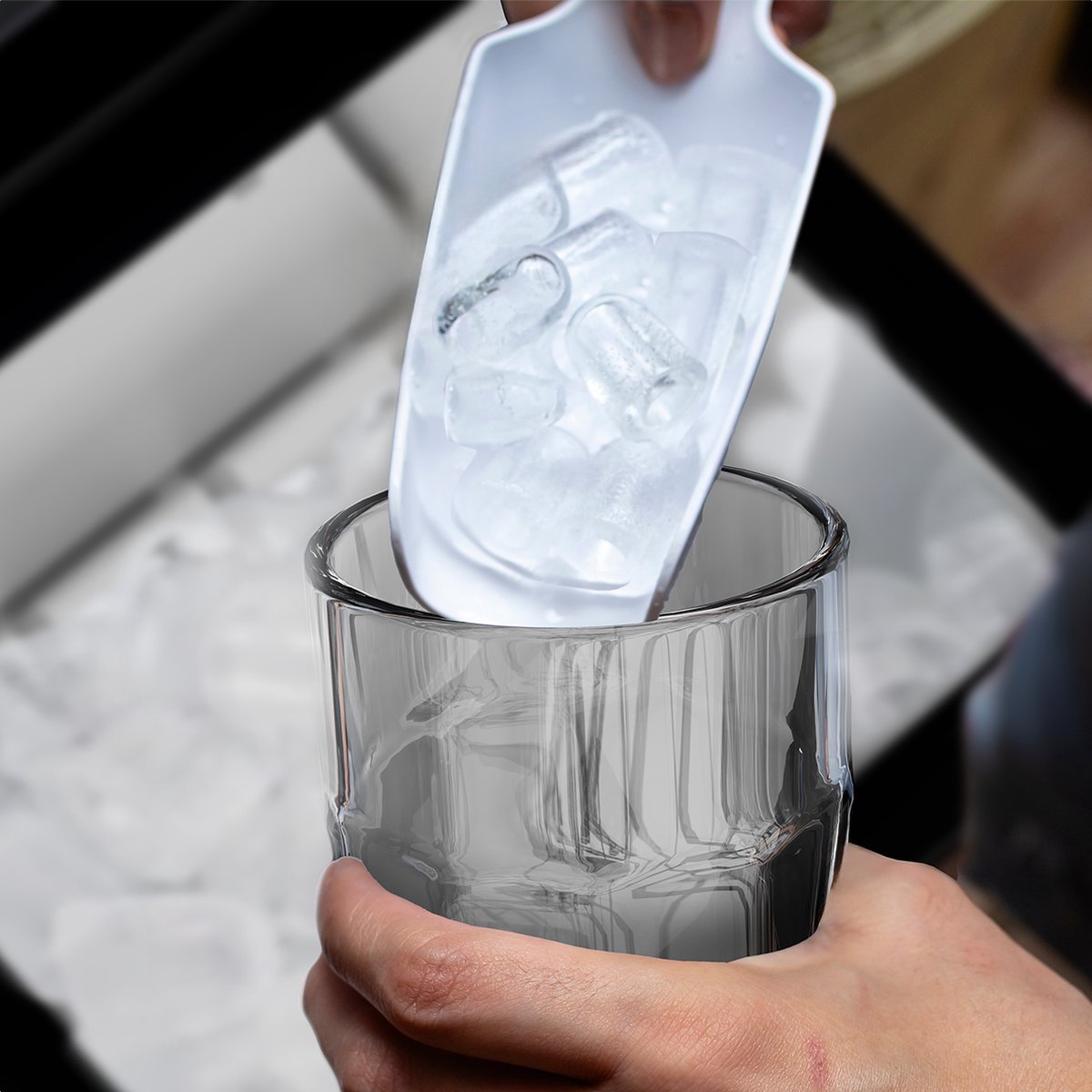 Son design léger et moderne s’adapte à tous les intérieurs et sa mobilité vous permet de l’installer facilement sur un plan de travail ou de l’emporter lors de vos soirées. La machine est livrée avec une pelle et un panier à glaçons pour une utilisation encore plus pratique.