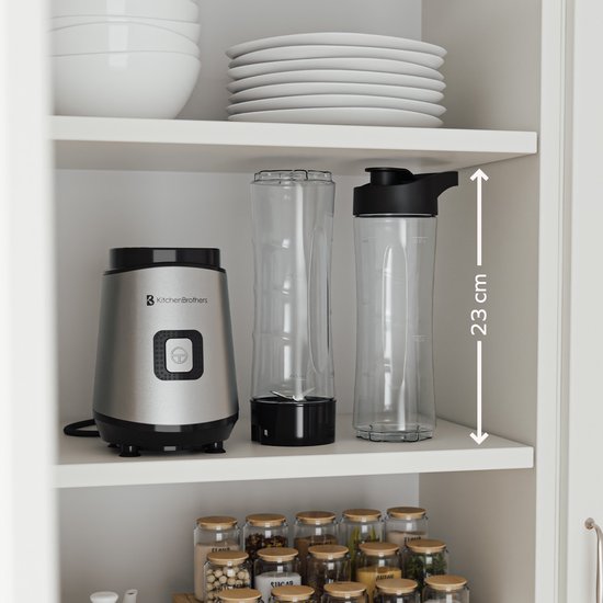 KitchenBrothers Mini Blender - Blender to Go - Smoothie Maker - 2 To-Go Cups 600 ml - acier inoxydable
