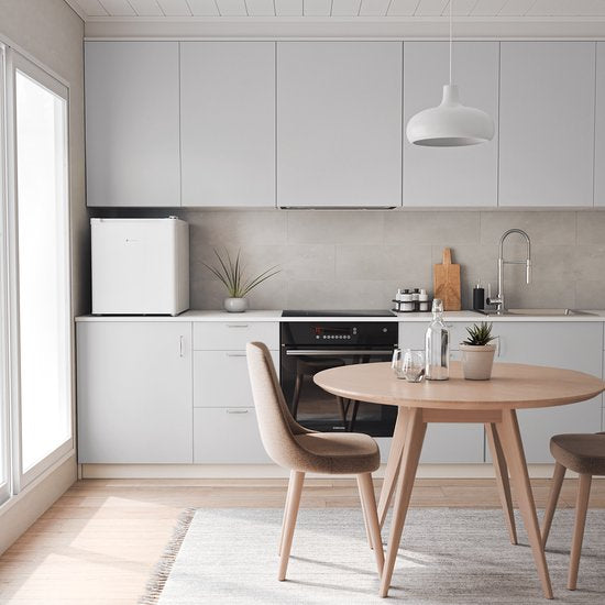 Vous avez besoin d'un peu plus d'espace dans votre réfrigérateur pour vos bouteilles de sauce, vos packs de boissons et autres aliments ? Pas de problème, ce mini-frigo vous dépanne. Ce modèle s'intègre parfaitement sous votre bureau ou dans un placard de cuisine, ou encore sur un réfrigérateur de table de KitchenBrothers.