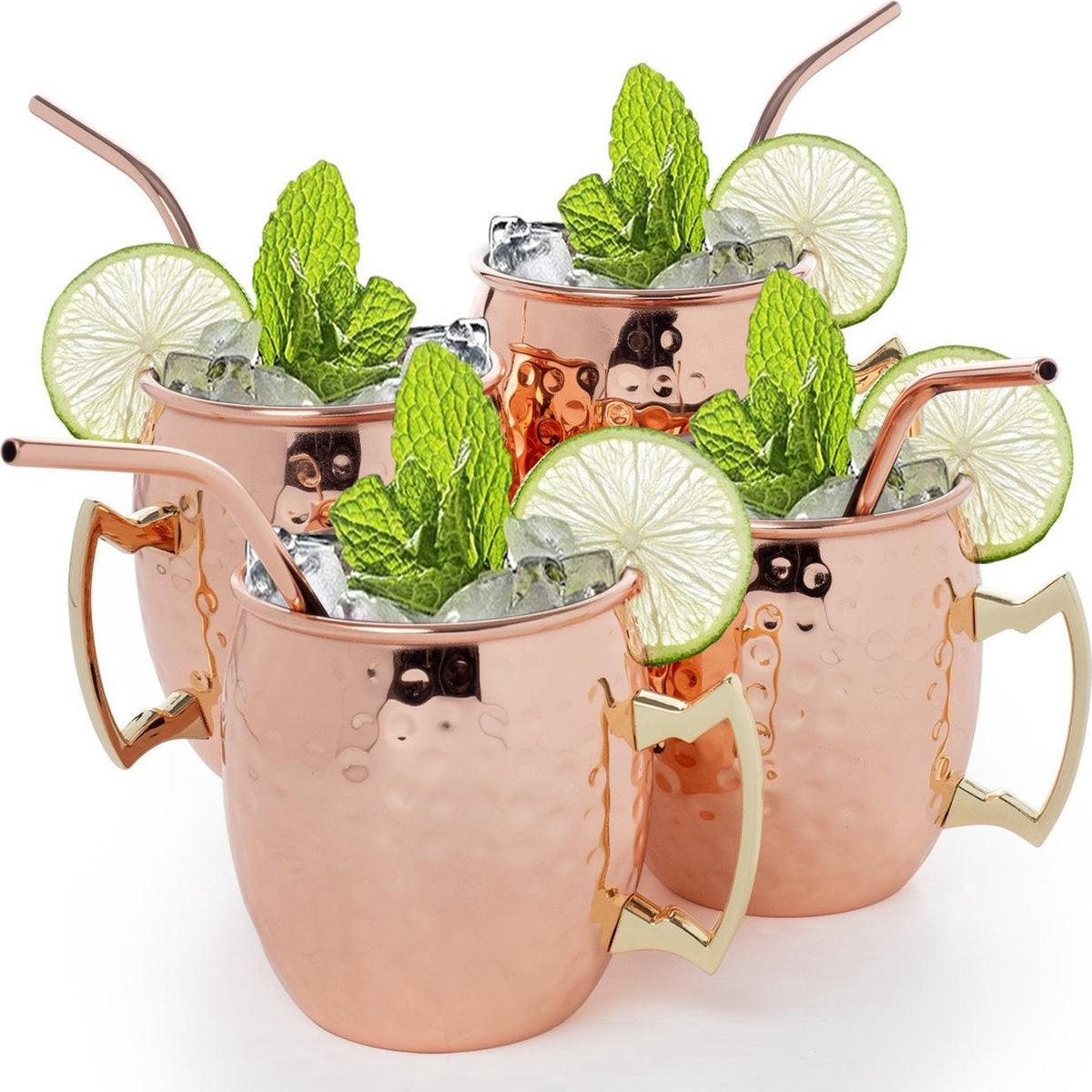 KitchenBrothers Moscow Mule Cups - Verres à cocktail avec pailles - 4 pièces - cuivré - 500ML
