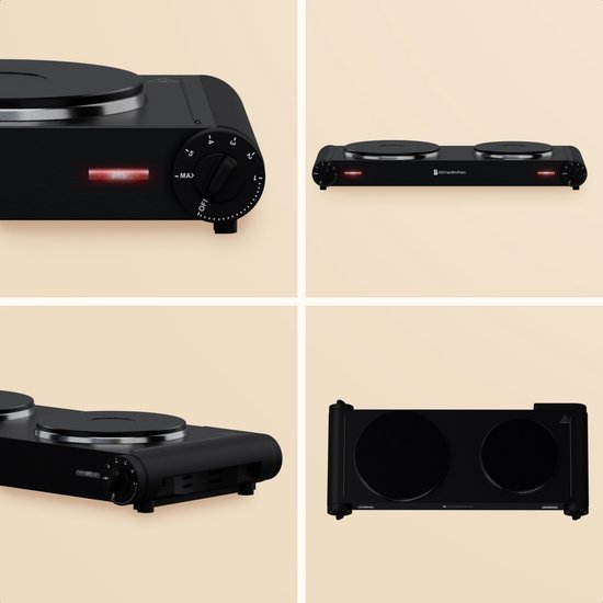 Table de cuisson électrique KitchenBrothers - 2 brûleurs - pose libre - 7 réglages de température - 1500W + 1000W - Noir
