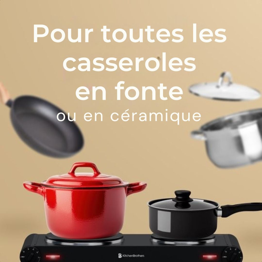 Elle est compatible avec la majorité des casseroles et poêles courantes, ce qui permet d’utiliser votre batterie de cuisine existante.