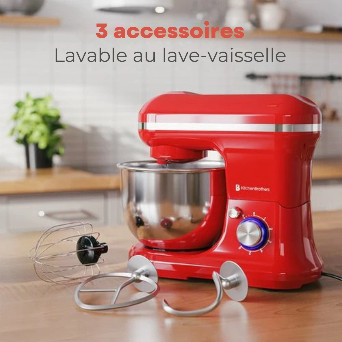 - Accessoires inclus : fouet, crochet à fromage, crochet à pétrir