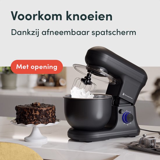 Préparez facilement la pâte pour les gâteaux et les tartes ou montez les blancs d'œufs et la crème jusqu'à ce qu'ils deviennent mousseux avec le puissant robot de cuisine KitchenBrothers de 1200W. Équipé d'un généreux bol de mélange en acier inoxydable de 5 litres et de trois accessoires différents, ce robot de cuisine polyvalent deviendra indispensable dans votre cuisine. Le cadran éclairé par LED vous permet de choisir sans effort parmi six réglages de vitesse ou d'utiliser la fonction de pulsation. La tête inclinable et l'écran d'éclaboussure avec ouverture de remplissage contribuent à une expérience encore plus facile.