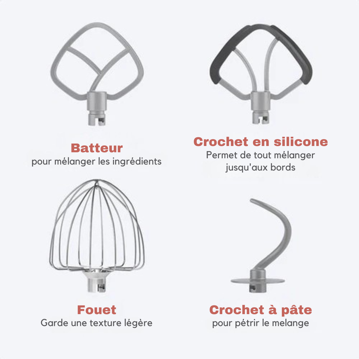 En tant que cuisinier amateur, vous comprenez l'importance d'avoir de bons ustensiles de cuisine. Que vous souhaitiez vous détendre, laisser libre cours à votre créativité dans la cuisine ou impressionner vos proches avec un délicieux repas, vous avez besoin des bons outils. Découvrez le mixeur de cuisine de KitchenBrothers. Vos avantages En 4 belles couleurs 6 réglages puissants Résistant au lave-vaisselle Écran avec minuterie Écran d'affichage pratique avec ouverture Puissance et flexibilité Mettez le robot en marche et vous remarquerez immédiatement la puissance du moteur de 1400W. Que vous pétrissiez de la pâte à pain ou que vous fouettiez de la crème, le robot de cuisine de KitchenBrothers est toujours là pour vous. Avec 6 vitesses et une fonction pulse, vous avez toujours la bonne vitesse pour chaque recette. Vous n'avez pas envie d'attendre que votre recette soit prête ? Réglez alors la minuterie et le robot s'arrêtera automatiquement à la fin du temps imparti. L'affichage clair indique à la fois la minuterie et la vitesse. Esthétique et fonctionnalité en un Ce robot culinaire n'est pas seulement multifonctionnel, il est aussi agréable à regarder. Choisissez parmi les couleurs rouge, noir, anthracite ou argent et laissez l'appareil s'intégrer parfaitement à votre cuisine. La base en plastique ABS, combinée à un couvercle en acier inoxydable, est synonyme de luxe et de durabilité. Pratique et convivial Imaginez : vous préparez un délicieux gâteau au chocolat pour une occasion spéciale. Vous mettez les ingrédients dans le bol en acier inoxydable de 6 litres. Pendant que vous mélangez, vous pouvez facilement faire le reste de vos préparations, car le robot reste fermement en place grâce aux ventouses situées sur le fond. Une fois les préparations terminées ? Le fouet, le crochet pétrisseur, le batteur ordinaire et le batteur en silicone inclus peuvent tous être lavés au lave-vaisselle. Le nettoyage n'a jamais été aussi facile ! Découvrez les appareils de cuisine KitchenBrothers Chez KitchenBrothers, vous trouverez l'appareil de cuisine idéal dans une gamme de couleurs joliment sélectionnées. Transformez vos rêves culinaires en réalité grâce à notre collection polyvalente. Que vous soyez passionné de pâtisserie ou de cuisine, nous avons l'appareil qu'il vous faut. Choisissez une couleur assortie à votre cuisine et découvrez les possibilités infinies qu'offre le robot de cuisine qui correspond à votre niveau de compétence. Améliorez votre expérience culinaire dès aujourd'hui avec KitchenBrothers.