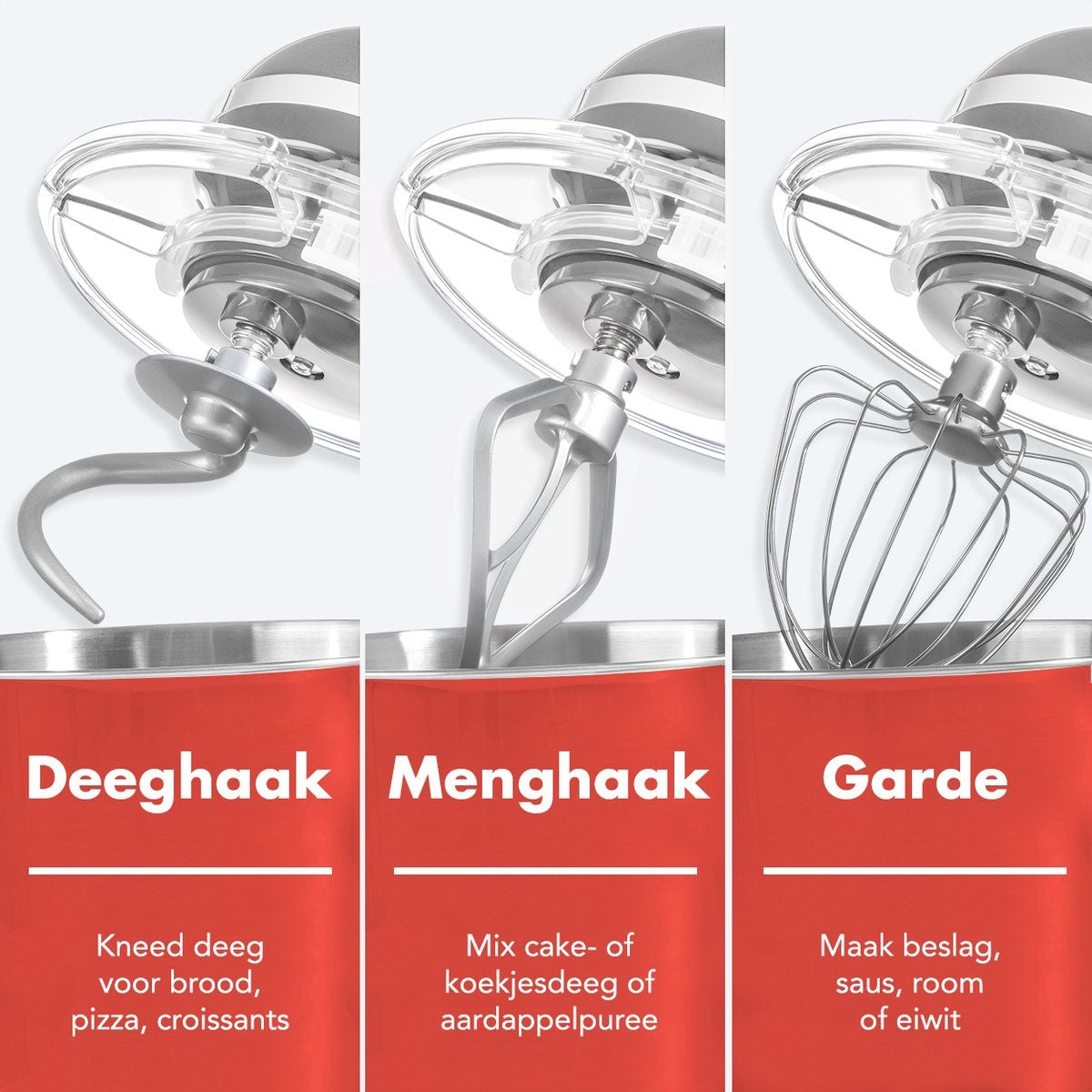 - Ensemble complet d'accessoires : Livré avec trois accessoires interchangeables - crochet mélangeur, fouet et crochet pétrisseur - ce robot vous offre tout ce dont vous avez besoin pour une variété de préparations culinaires.
