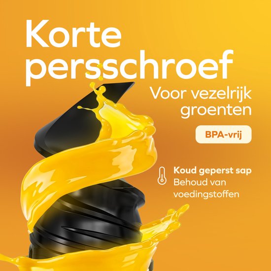 Le cœur battant de ce presse-agrumes lent est la vis de pressage courte innovante, sans BPA, qui assure une extraction idéale du jus des fruits et des légumes. Cette vis de pressage écrase et malaxe les fruits dans un mouvement lent, au lieu de les hacher, ce qui garantit un rendement optimal en jus qui conserve intacts tous les précieux nutriments, enzymes et vitamines. Ce processus d'extraction lente empêche l'oxydation, de sorte que votre jus reste frais plus longtemps et a une saveur supérieure. De plus, cette vis de pressage courte est plus facile à nettoyer que les modèles longs et offre un fonctionnement plus efficace avec moins de risques d'obstruction.