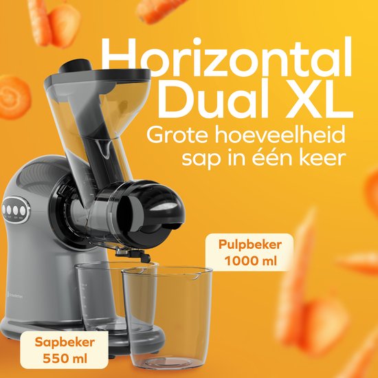 KitchenBrothers Slowjuicer XL - Presse-agrumes - Presse-légumes et fruits - Alimentation 43 mm et 70 mm - 500 ml - Gris