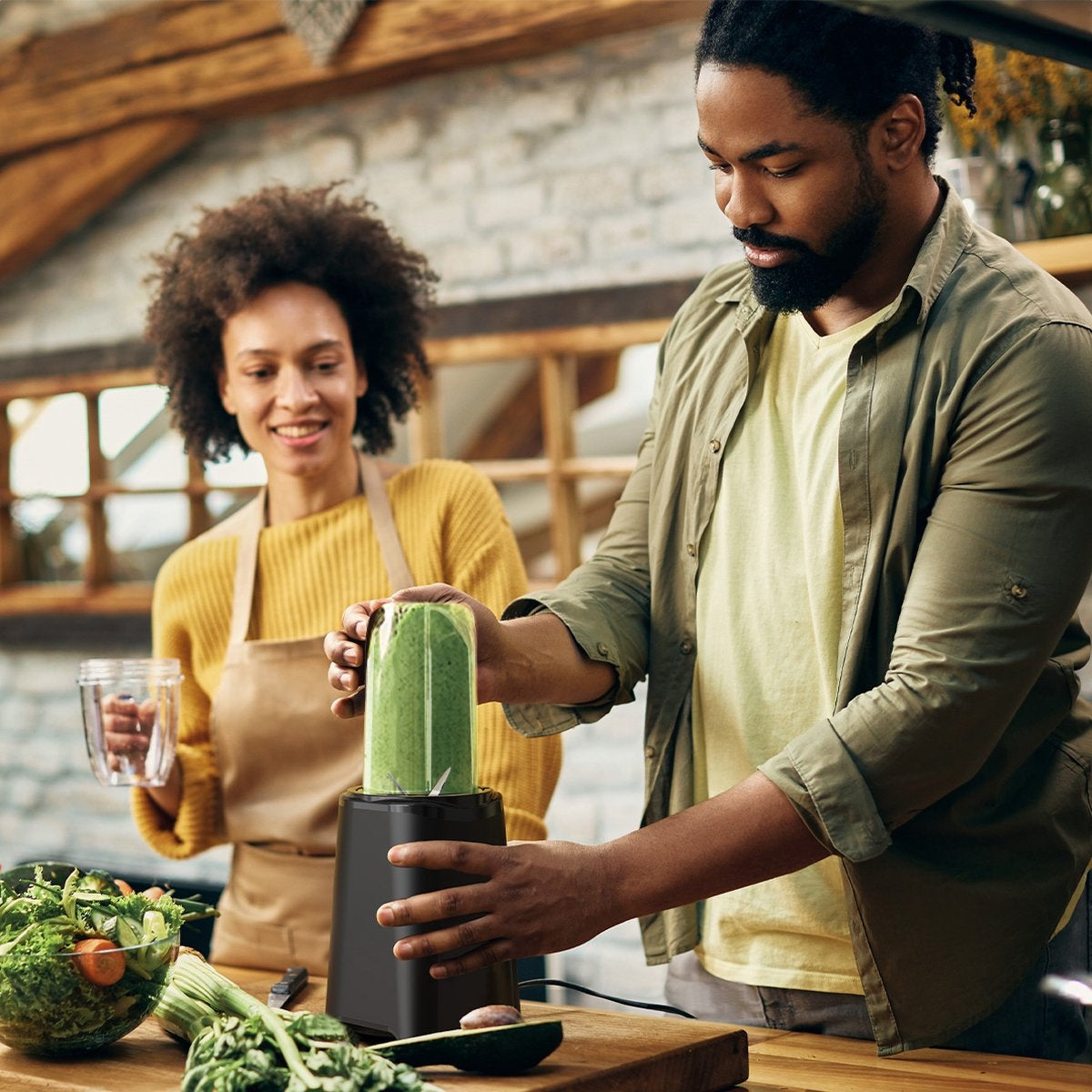 - Ensemble complet comprenant un blender, deux lames en acier inoxydable, des gobelets de différentes tailles, des couvercles, des anneaux de marquage colorés et plus encore, éliminant ainsi le besoin d'accessoires ou d'appareils supplémentaires.