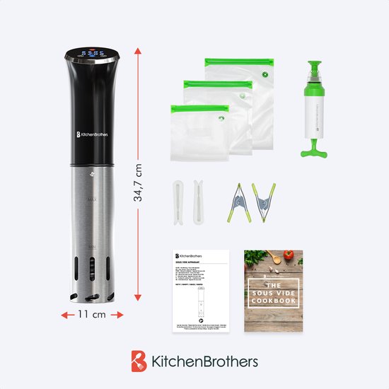 KitchenBrothers Stick Sous Vide - Accessoires inclus - 1200 W - 11 x 7,5 x 34,7 cm - Noir/RVS