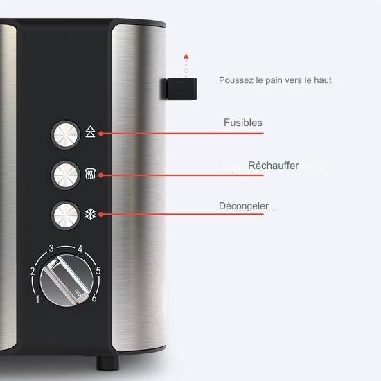 Grille pain - KitchenBrothers - Toaster - 6 niveaux de chaleur - 1520W - inox/noir