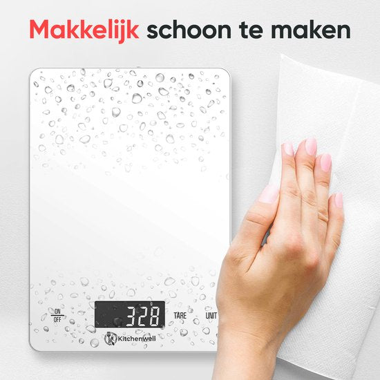 Kitchenwell Balance de cuisine numérique de précision - Balance de cuisine - 1gr - 15kg - Fonction tare - Rechargeable par USB - Blanc