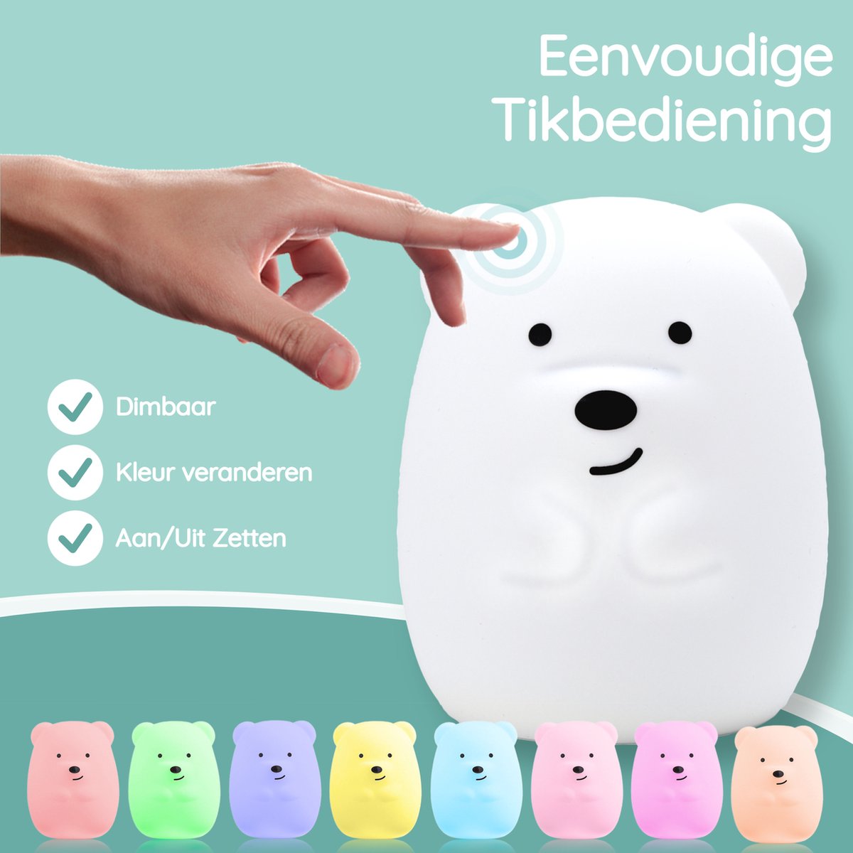 Ourson veilleuse pour enfants Sleepy Friends - 8 couleurs - Dimmable et rechargeable par USB - 95 x 97 x 100 mm - Veilleuse pour chambre de bébé et d'enfant