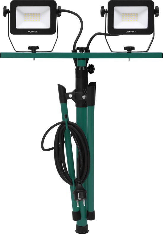 VONROC Lampe de travail à leds 2x 20W - 3200 lumens - Support réglable en hauteur - Orientable et inclinable