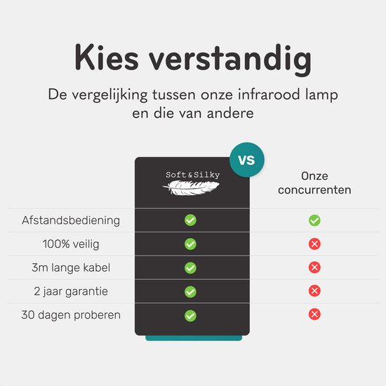 Apportez votre lampe infrarouge Soft & Silky chez vous dès aujourd'hui et découvrez par vous-même les bienfaits de la thérapie infrarouge. Détendez-vous, récupérez et améliorez votre santé et votre bien-être. Commandez dès maintenant et passez à la vitesse supérieure dans votre routine de récupération et de relaxation !