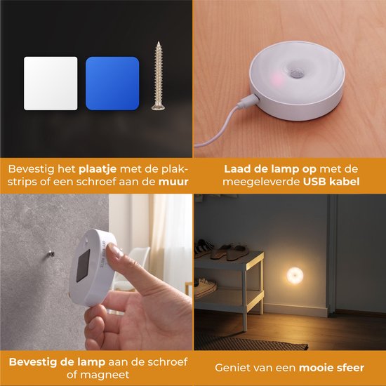 Nuvance - Lampe à Led sans fil - 2 pièces - Lumière blanc chaud - Magnétique - Détecteur jour et nuit - Rechargeable par Usb - Lampe de placard - Lampe murale