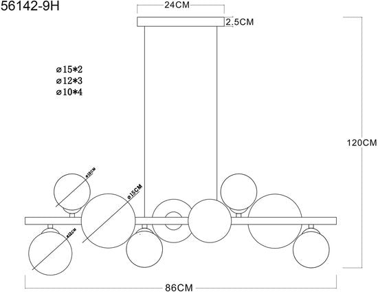 La lampe suspendue RIHA est un complément moderne et élégant à tout intérieur. Avec son design inhabituel et allongé et ses accents en verre de différentes tailles, cette lampe attire tous les regards dans n'importe quelle pièce. Le boîtier est en métal gris mat, ce qui lui confère une allure intemporelle et élégante. L'abat-jour est composé d'ampoules en verre brillant qui diffusent la lumière de manière douce et homogène, contribuant ainsi à créer une ambiance chaleureuse. Avec des dimensions de 860 mm de long et 345 mm de large, la lampe suspendue RIHA s'intègre parfaitement dans divers environnements. Avec un rendement lumineux de 290 lumens, cette lampe offre une luminosité suffisante et crée une atmosphère agréable. Les éléments en verre sont disponibles dans des teintes élégantes telles que le bronze, le vert et l'essence, ce qui confère à la lampe un aspect unique et ajoute des touches de couleur élégantes. La lampe suspendue RIHA allie esthétique et fonctionnalité et est parfaite pour être placée au-dessus des tables à manger ou d'autres endroits où un éclairage d'ambiance est souhaité.Découvrez la lampe suspendue RIHA et donnez à votre intérieur une atmosphère contemporaine et élégante.