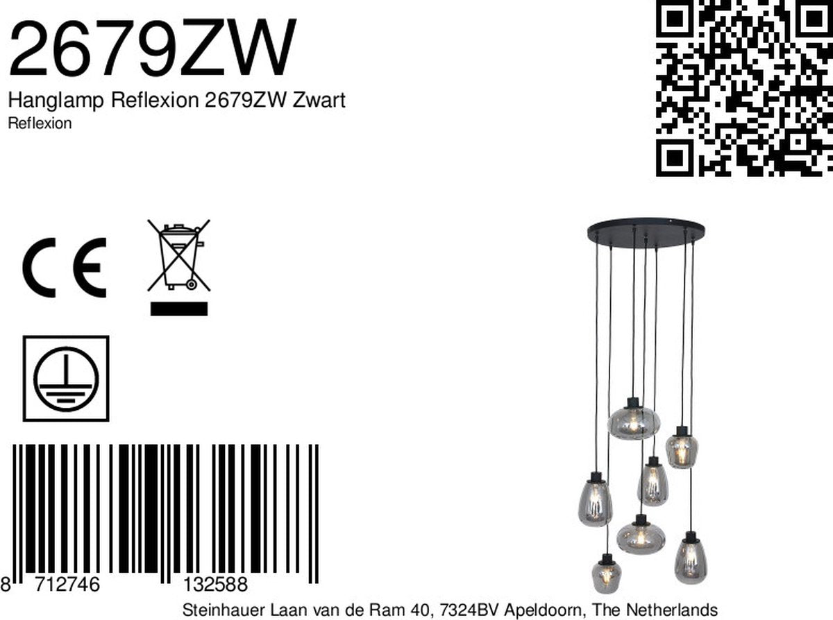La lampe suspendue Reflexion portant le numéro d'article 2679ZW est fabriquée par Steinhauer. Le numéro EAN de ce produit est 8712746132588. Cette lampe noire est fabriquée en métal. Cette belle lampe suspendue a un poids de 7,9 kg