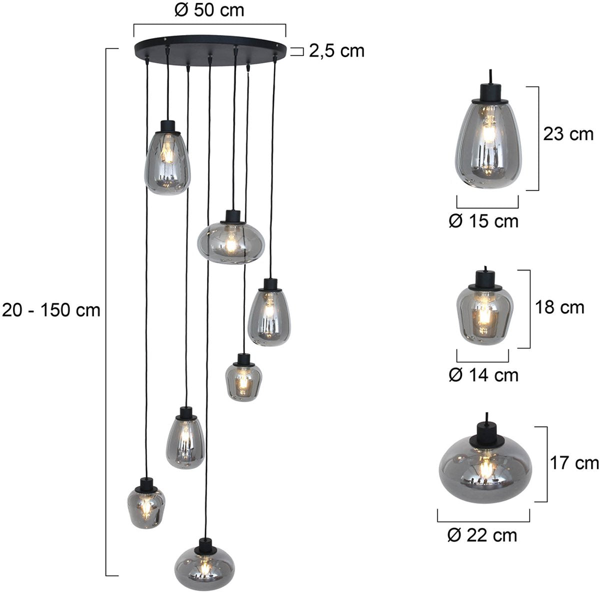 Dimensions de la lampe suspendue