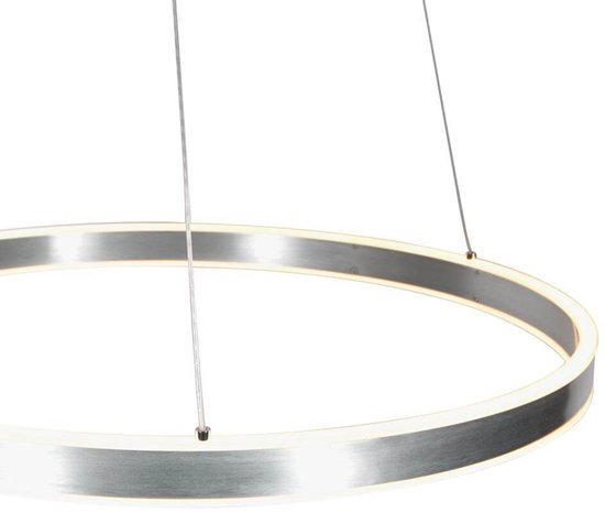 La lampe suspendue Ringlux de couleur acier est un ajout contemporain et élégant à tout intérieur. Avec un anneau métallique de 60 cm de diamètre, cette lampe diffuse la lumière vers le haut et vers le bas, contribuant ainsi à une ambiance chaleureuse. Avec une puissance lumineuse de 4 200 lumens et une température de couleur chaude de 2 700 kelvins, cette lampe offre un confort optimal. Grâce à sa fonction dimmable et à ses options de suspension réglables, cette lampe suspendue moderne de couleur acier peut facilement s'adapter à différents besoins en matière d'éclairage. Cette lampe suspendue de la marque Steinhauer bénéficie d'une garantie de 2 ans.