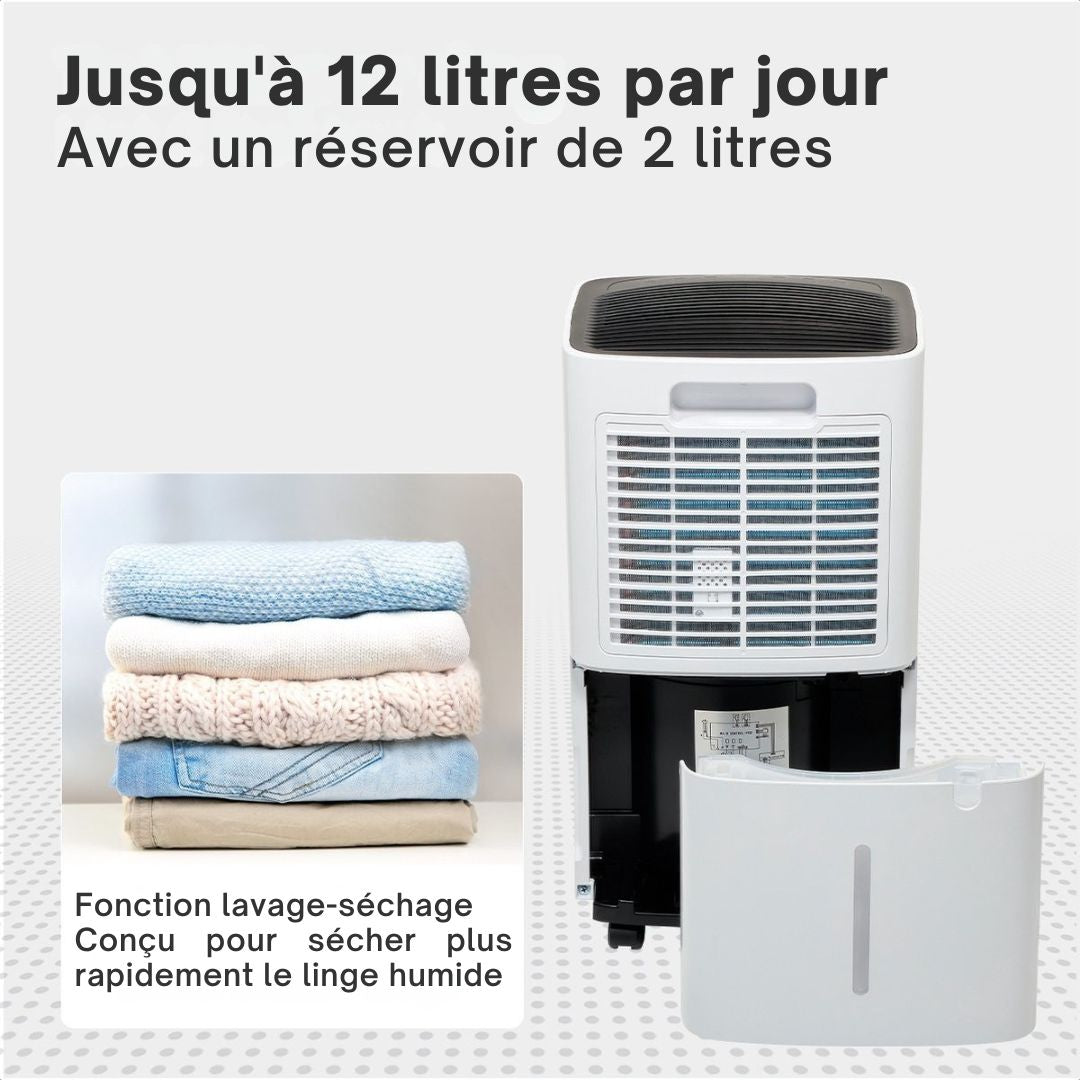 Déshumidificateur Auronic - 12 litres par jour - Fonction Lavage-Séchage - 185 W - 30,5 x 26,5 x 52 cm - Blanc