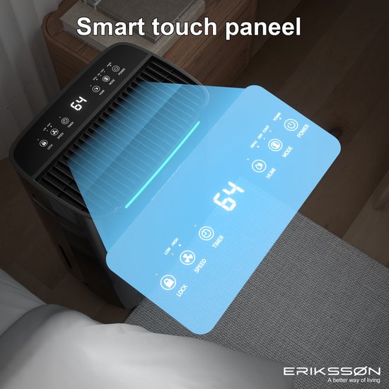 - Grâce à la fonction de verrouillage, le déshumidificateur Erikssøn peut être verrouillé, évitant ainsi une utilisation involontaire par les tout-petits.