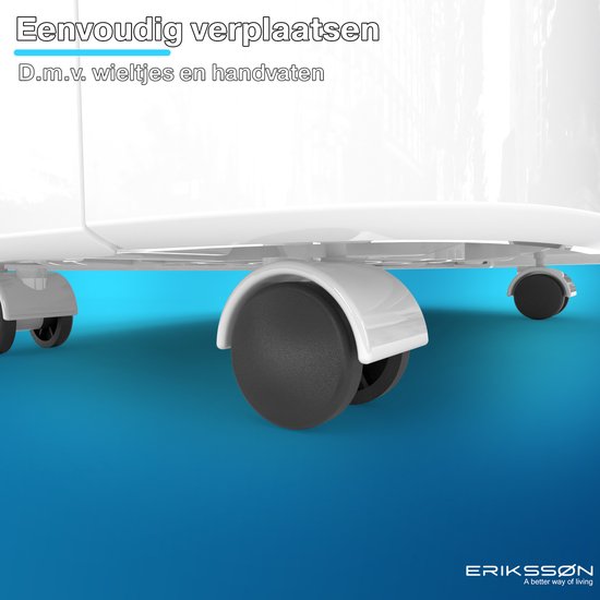Ce déshumidificateur est puissant, économe en énergie et a un niveau sonore de seulement 45 dB, ce qui en fait le déshumidificateur compact le plus silencieux et le plus efficace sur le marché aux Pays-Bas. Le déshumidificateur d'air Dry Pro Plus 20L d'Erikssøn peut déshumidifier jusqu'à 175 m³ par heure.